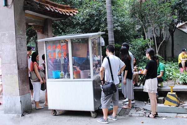 人們圍坐著小推車,檔主們開始了買賣,到處一遍紅火的景象。就算是熱辣辣的夏天,對愛吃的人們來說,根本形成不了障礙,誰叫我就愛這陣香氣,就愛這種嚼勁,就愛喝熱湯逼出來的那種大汗淋漓的感覺。