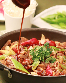 獨特的工藝:是指烹制技法,以燜為主,用十多種新鮮蔬菜加之秘制的底油、醬汁以及各種藥料燜制各種肉類魚類海鮮等食物,營養(yǎng)不流失,汁濃味厚,綿嫩鮮香;加上秘制的高湯,還可涮吃各種蔬菜類,肉類食品,可謂先吃后涮,回味雋永!